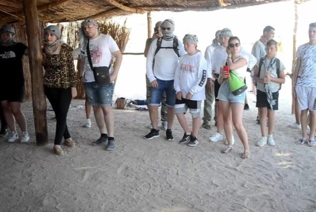 Then, experience an exciting jeep safari through the desert, climbing sand dunes on the way to the Bedouin village .
